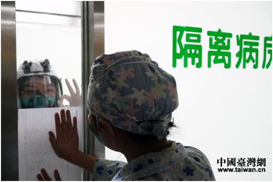 看到護(hù)士長(zhǎng)的字條,隔著玻璃的護(hù)士闕珊在里表示Ok(圖片來源:湖南省臺(tái)辦)