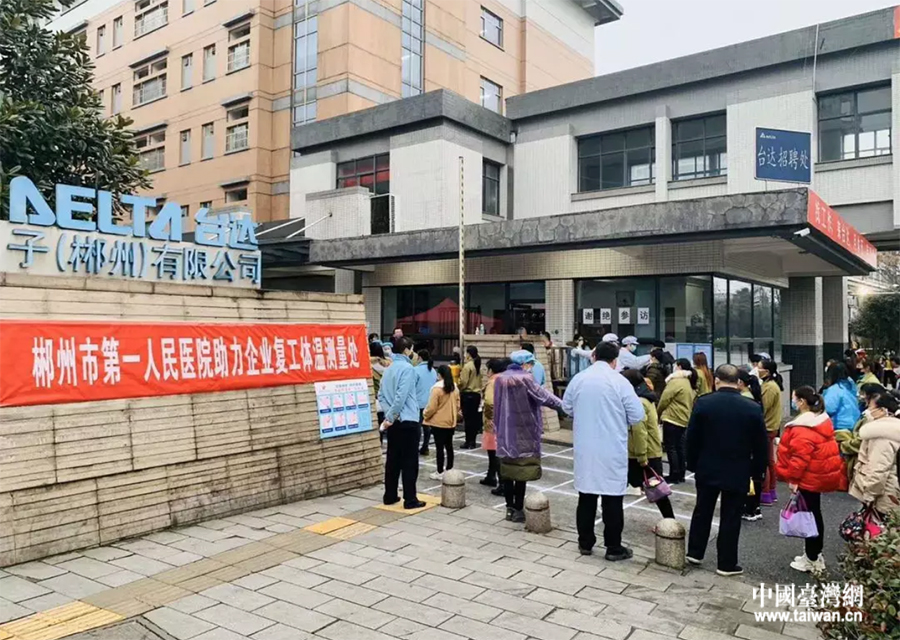 中國臺(tái)灣網(wǎng)2月13日訊 2月10日,郴州市首家大型臺(tái)資企業(yè)臺(tái)達(dá)電子復(fù)產(chǎn)。開工前,郴州市委辦公室(市委臺(tái)辦)按照省委對(duì)臺(tái)工作領(lǐng)導(dǎo)小組辦公室《關(guān)于全力支持和組織推動(dòng)在湘臺(tái)資企業(yè)復(fù)工復(fù)產(chǎn)的通知》文件要求,與企業(yè)進(jìn)行專項(xiàng)對(duì)接,指導(dǎo)其在全力做好疫情防控工作的前提下,積極籌備復(fù)工復(fù)產(chǎn)。