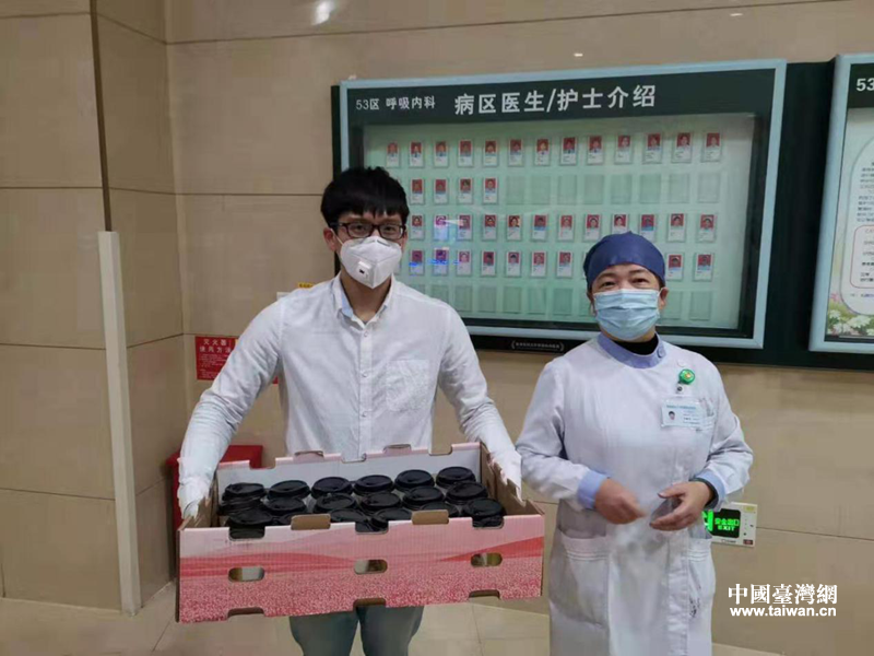 郭屹凡給醫(yī)院送咖啡(圖片來(lái)源:福州市臺(tái)港澳辦)