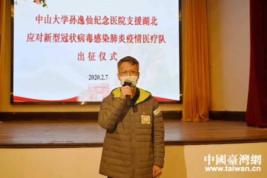 作為十九大臺(tái)灣省籍代表、中華全國(guó)臺(tái)灣同胞聯(lián)誼會(huì)理事、廣東省臺(tái)灣同胞聯(lián)誼會(huì)的副會(huì)長(zhǎng)、著名醫(yī)療專家,許可慰在出征儀式上表示,感謝黨、國(guó)家和醫(yī)院對(duì)我們的信任,作為醫(yī)務(wù)人員、作為黨員,在國(guó)家需要時(shí)我們必將做到不忘初心、牢記使命,挺身而出。“我們?cè)诔霭l(fā)前2小時(shí)內(nèi)就成功組建了這一支131人的醫(yī)療隊(duì),大家的積極踴躍也展現(xiàn)了我們逸仙人的家國(guó)情懷;我們相信,在黨和國(guó)家的的堅(jiān)強(qiáng)領(lǐng)導(dǎo)下,在醫(yī)院領(lǐng)導(dǎo)和全體職工的大力支持下,我們眾志成城,一定能夠圓滿完成此次任務(wù)!