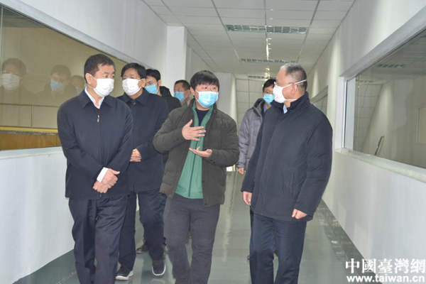 中國(guó)臺(tái)灣網(wǎng)2月18日訊 2020年2月17日上午,中共河北省委臺(tái)灣工作辦公室主任王立杰一行到部分臺(tái)企調(diào)研企業(yè)復(fù)工復(fù)產(chǎn)及新冠肺炎疫情防控情況。石家莊市委常委、宣傳部長(zhǎng)、統(tǒng)戰(zhàn)部長(zhǎng)王韶華一同調(diào)研。調(diào)研組一行先后走訪了石家莊國(guó)祥運(yùn)輸設(shè)備有限公司和石家莊頂津食品有限公司。