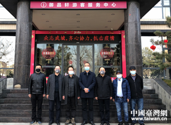 楊廣亭(右四)與陜西振彰食品有限公司(御品軒)有關(guān)負(fù)責(zé)人合影。 (中國(guó)臺(tái)灣網(wǎng) 發(fā))