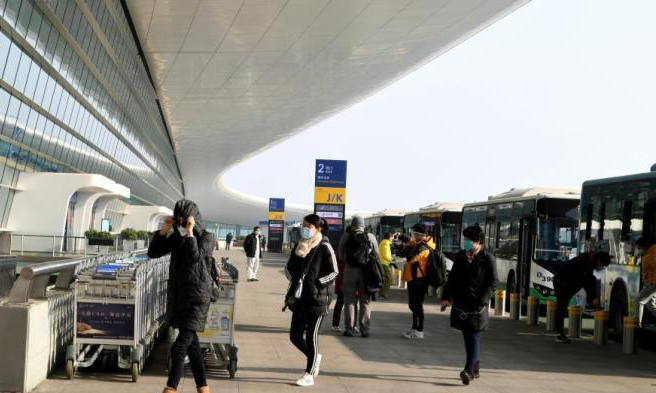 首批滯留湖北臺(tái)胞搭乘東航加班機(jī)返鄉(xiāng)。(來(lái)源:中新社)