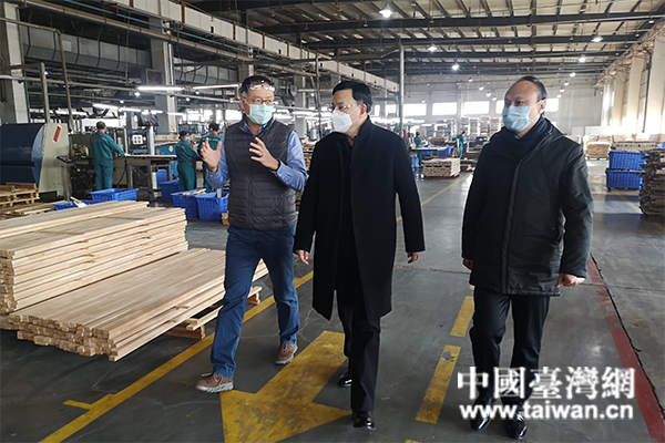 2月20日,青島市臺港澳辦主任紀家棟帶領(lǐng)企業(yè)服務(wù)專班和物資保障專班負責(zé)人,到西海岸新區(qū)和膠州市走訪復(fù)工企業(yè),幫助支持引導(dǎo)臺資企業(yè)有效防控新冠病毒疫情、合理安排恢復(fù)生產(chǎn)。(圖片來源:山東省臺港澳辦)