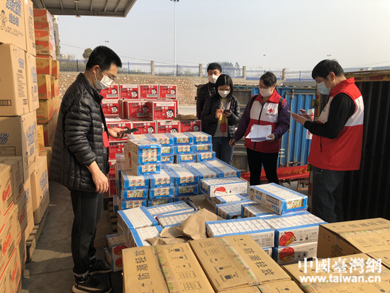 上海旺旺商貿(mào)有限公司南寧分公司為疫情防控戰(zhàn)線捐贈物資。 (中國臺灣網(wǎng) 發(fā))