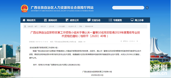 中國臺灣網(wǎng)2月28日訊 據(jù)廣西壯族自治區(qū)人力資源和社會保障廳消息,廣西壯族自治區(qū)職稱改革工作領導小組評審確認10位同志取得2019年廣西高級專業(yè)技術資格,其中包含4名臺籍教師。