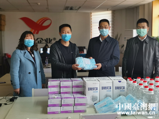 崔鵬沖代表省臺辦向蘭州統(tǒng)一食品有限公司贈送防疫物資。 (中國臺灣網(wǎng) 發(fā))