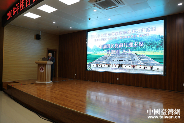 2018年12月,林政則出席桂臺(tái)客家宗親經(jīng)濟(jì)文化論壇并致辭。 (中國(guó)臺(tái)灣網(wǎng) 發(fā))