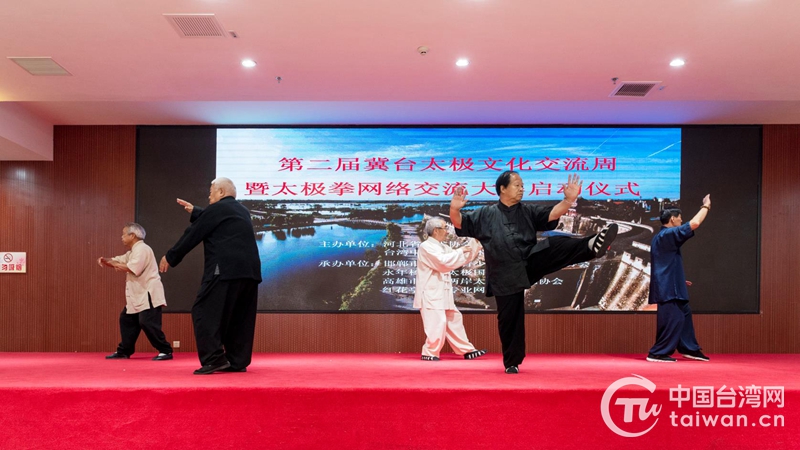 啟動儀式現(xiàn)場,冀臺兩地太極拳傳人進行了現(xiàn)場連線活動。臺灣高雄市海峽兩岸太極拳交流協(xié)會理事長黃文佑、屏東縣太極拳委員會主任委員劉玉霞等近10位臺灣太極拳界代表,6家臺灣太極拳協(xié)會20余位臺灣太極拳愛好者通過視頻祝賀本屆活動圓滿成功。永年當?shù)靥珮O拳傳承人和青少年學生現(xiàn)場展示了傳統(tǒng)楊氏、武式太極拳和太極器械套路。