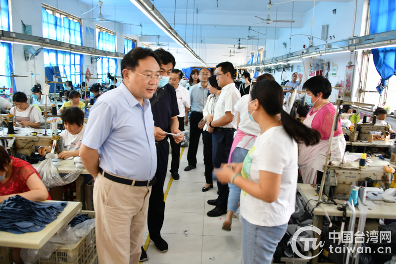 考察濟(jì)寧德霖手套制品有限公司(圖片來源:山東省委臺港澳辦)