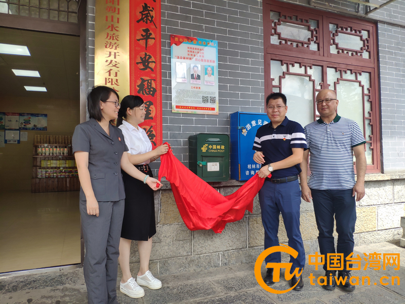 桂林市陽(yáng)朔縣“法企面對(duì)面”同心服務(wù)聯(lián)系牌揭牌。(圖片來(lái)源:廣西桂林市臺(tái)辦)