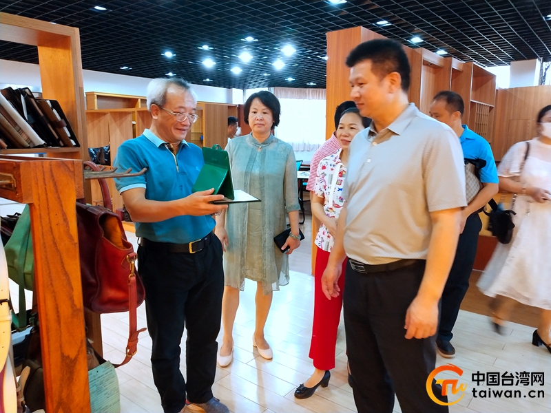 廣西臺(tái)辦副主任丘德彬一行考察東莞寶悅皮具有限公司(圖片來(lái)源:廣西玉林市臺(tái)辦)