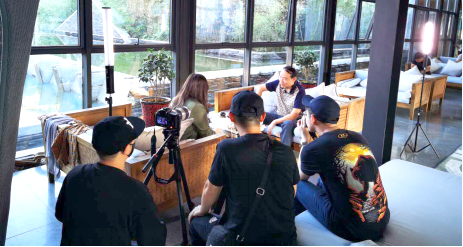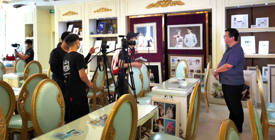 巴黎婚紗總經(jīng)理鄭振鴻接受采訪。(河北省委臺(tái)辦供圖)