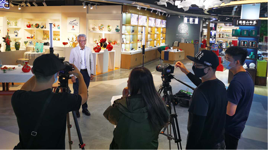 法藍(lán)瓷實(shí)業(yè)有限公司總裁特別助理侯貫中博士接受采訪。(河北省委臺(tái)辦供圖)
