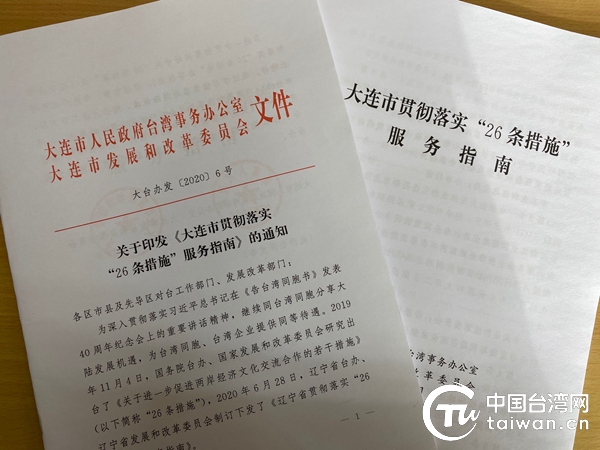 大連市制定出臺貫徹落實“26條措施”服務指南。(大連市臺辦供圖)