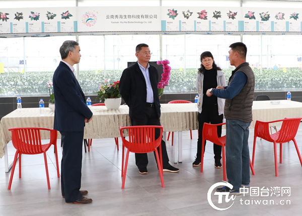 云南省委臺(tái)辦王忠主任(左二)調(diào)研云南秀海生物科技有限公司。(云南省委臺(tái)辦供圖)