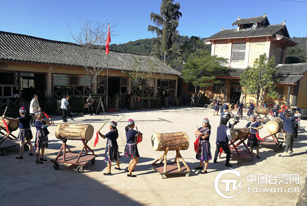 拍攝墨江哈尼族牛皮大鼓舞。(普洱市委臺辦供圖)