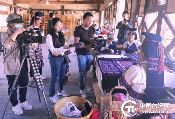 采訪拍攝哈尼族刺繡。(普洱市委臺辦供圖)