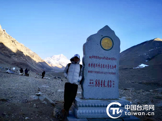 何浩宇與珠穆朗瑪峰合影留念。(中國臺(tái)灣網(wǎng)發(fā))