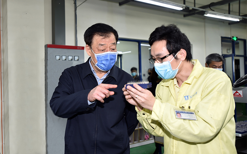 4月2日,中共江西省委書記劉奇在臺資企業(yè)百利精密刀具(南昌)有限公司調(diào)研企業(yè)復工復產(chǎn)情況。(江西省臺辦供圖)