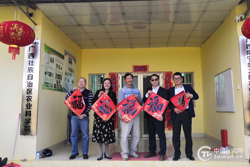 南寧市臺(tái)辦為在西鄉(xiāng)塘壇洛鎮(zhèn)過年臺(tái)商王金都送去祝福。(來源:南寧市臺(tái)辦)
