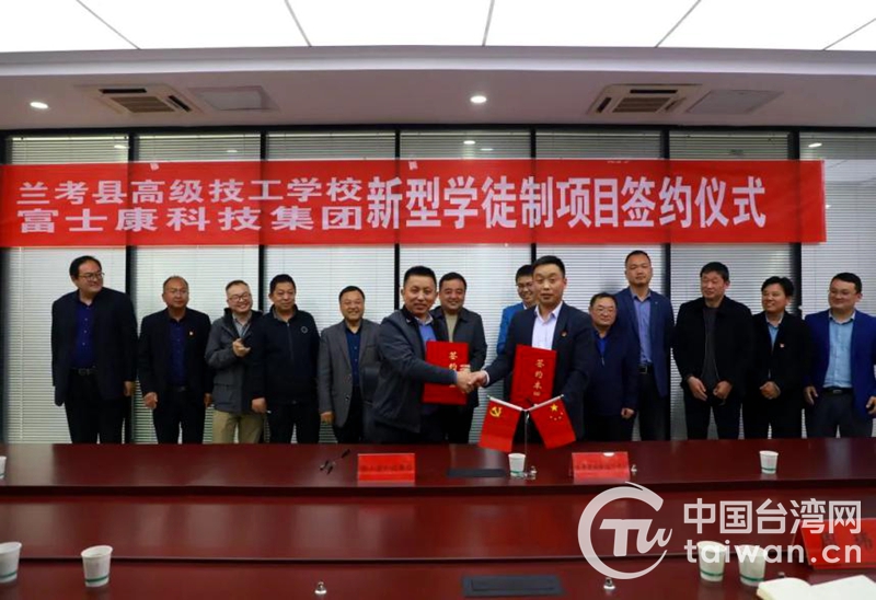 中國臺灣網(wǎng)4月19日訊 為進一步提升員工綜合技能水平,加快知識型、技能型、創(chuàng)新型人才隊伍建設(shè),實現(xiàn)“招工即招生,入企即入!彪p師育人的共贏局面,富士康蘭考科技園日前與蘭考縣高級技工學(xué)校簽約,進行新型學(xué)徒制校企合作。