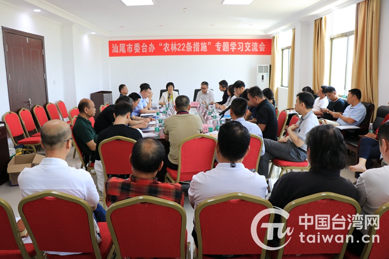 臺(tái)灣青年聯(lián)合會(huì)農(nóng)創(chuàng)中心一行參加“農(nóng)林22條措施”專(zhuān)題學(xué)習(xí)交流會(huì)(圖片來(lái)源:汕尾市臺(tái)辦)