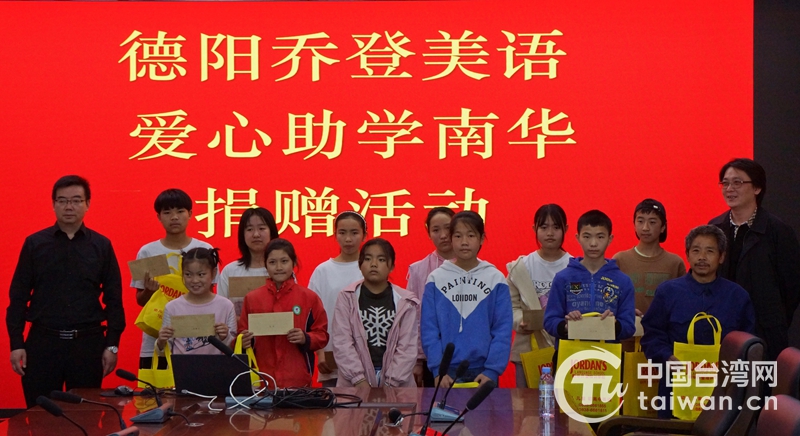 中國臺(tái)灣網(wǎng)4月27日訊 4月24日,四川德陽市臺(tái)資企業(yè)協(xié)會(huì)副會(huì)長、喬登美語事業(yè)機(jī)構(gòu)張嚴(yán)文先生前往德陽市旌陽區(qū)和新鎮(zhèn)長壽村、中江縣南華鎮(zhèn)和永太鎮(zhèn),向結(jié)對(duì)的43名中小學(xué)生捐贈(zèng)助學(xué)金、文具用品共計(jì)2萬余元。張嚴(yán)文勉勵(lì)孩子們,“要記住去年疫情對(duì)國家和人民帶來的磨難,將其轉(zhuǎn)化為更加刻苦學(xué)習(xí)的動(dòng)力,用知識(shí)的力量走出困境、感恩家庭、回饋社會(huì)、報(bào)效國家!