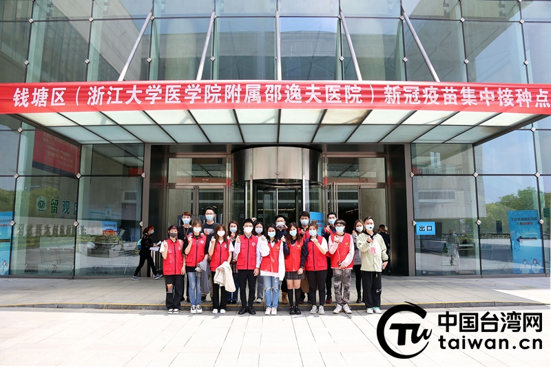 臺灣大學(xué)生青年健康護衛(wèi)隊在疫苗接種點(圖片來源:浙江省臺辦)