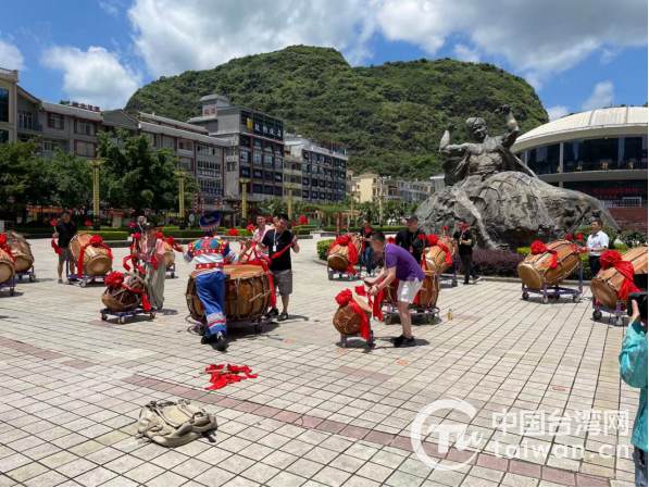 馬山縣位于廣西南寧市北部、大明山北麓、紅水河南岸, 聚居著壯、漢、瑤、苗等58萬各族人民,擁有中國長壽之鄉(xiāng)、中國民間文化藝術(shù)之鄉(xiāng)、中國會鼓之鄉(xiāng)等稱號。臺灣青年們剛走進馬山縣,當(dāng)?shù)貢年牃g天喜地擂起會鼓歡迎臺灣鄉(xiāng)親,熱鬧歡騰的鼓聲響徹天際。