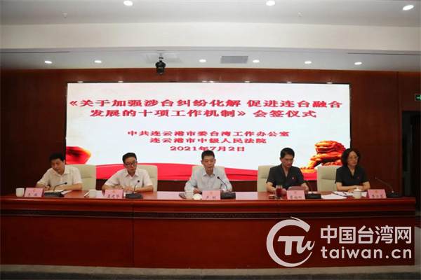 中國(guó)臺(tái)灣網(wǎng)7月6日訊 為推進(jìn)涉臺(tái)糾紛多元化解,有效保障臺(tái)胞臺(tái)商合法權(quán)益,近日,江蘇省連云港市臺(tái)辦、市中級(jí)人民法院聯(lián)合召開(kāi)加強(qiáng)涉臺(tái)糾紛化解促進(jìn)連臺(tái)融合發(fā)展工作會(huì)議,并舉行了《關(guān)于加強(qiáng)涉臺(tái)糾紛化解促進(jìn)連臺(tái)融合發(fā)展的十項(xiàng)工作機(jī)制》會(huì)簽儀式。