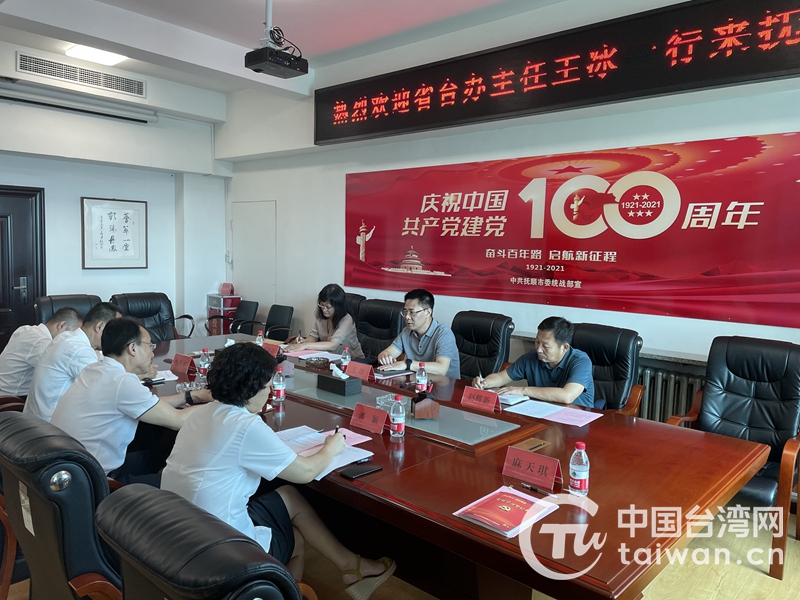 王冰與撫順市臺辦同志座談交流。(圖片來源:遼寧省臺辦)