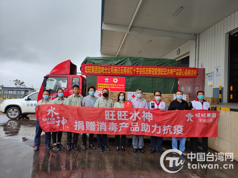 旺旺集團(tuán)昆明分公司捐贈消毒產(chǎn)品儀式(圖片來源: 云南省臺辦)