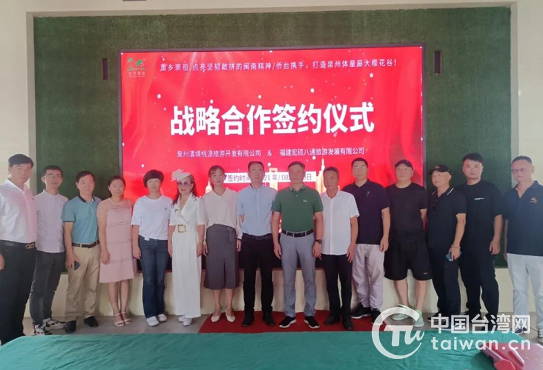 中國臺灣網(wǎng)8月27日訊 8月25日,泉州清境桃源旅游開發(fā)有限公司與福建宏碩八通旅游發(fā)展有限公司戰(zhàn)略合作簽約儀式在南安清境桃源景區(qū)舉行。