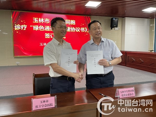 中國臺灣網(wǎng)9月1日訊 近日,廣西玉林市紅十字會醫(yī)院與玉林市臺灣同胞投資企業(yè)協(xié)會簽訂《臺灣同胞診療“綠色通道”共建協(xié)議書》,玉林市臺辦、玉林市衛(wèi)健委相關(guān)負(fù)責(zé)人與20名臺胞代表共同見證。