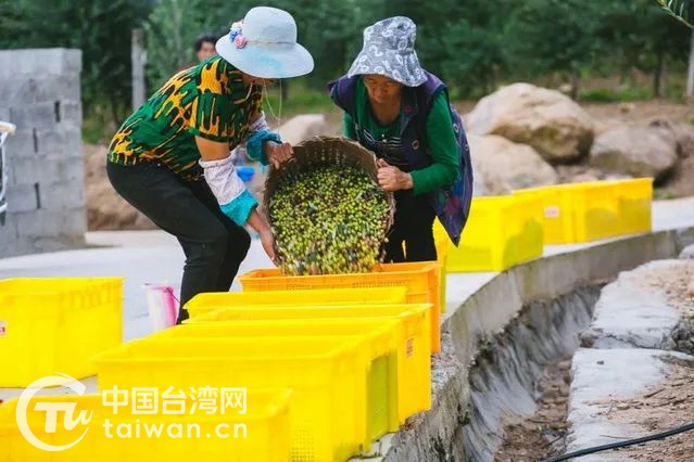 當(dāng)?shù)剞r(nóng)戶正將采摘下來的油橄欖裝箱(圖片來源:四川省臺(tái)辦)