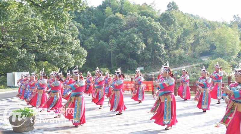 畬族鄉(xiāng)親載歌載舞歡迎杭州南投兩地青年朋友(圖片來(lái)源:杭州市臺(tái)辦)