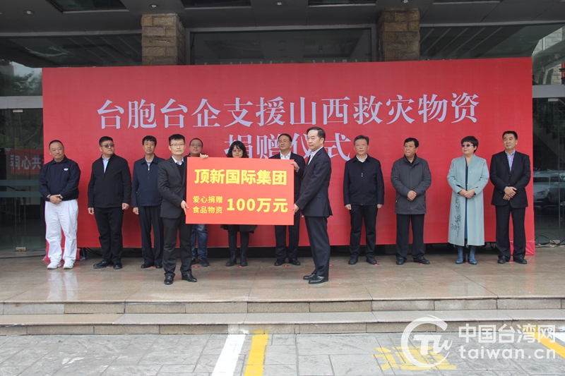 受強(qiáng)降雨影響,山西局部地區(qū)近日遭受嚴(yán)重雨澇災(zāi)害,多地出現(xiàn)洪水、內(nèi)澇和地質(zhì)災(zāi)害。災(zāi)情發(fā)生后,廣大臺(tái)商臺(tái)胞情系山西,紛紛通過多種方式表達(dá)對(duì)受災(zāi)同胞的關(guān)切和支持。在當(dāng)天的捐贈(zèng)活動(dòng)中,頂新國際集團(tuán)捐贈(zèng)100萬元食品物資,旺旺集團(tuán)捐贈(zèng)100萬元食品物資,慈濟(jì)慈善事業(yè)基金會(huì)捐贈(zèng)首批50萬元物資,太原市臺(tái)企協(xié)21名臺(tái)商捐款6.8萬元,臺(tái)灣中華兩岸婚姻家庭交流協(xié)會(huì)30名臺(tái)胞捐款6800元,海峽兩岸婚姻家庭協(xié)會(huì)24名臺(tái)胞捐款1.28萬元。