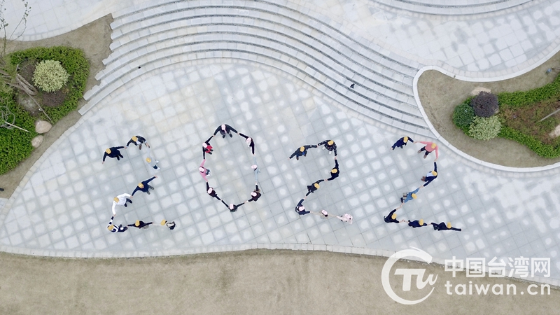 臺青手牽手?jǐn)[出“2022”造型(圖片來源:杭州市臺辦)