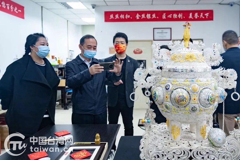 在向羅治平詳細(xì)介紹漆器和銀花絲工藝與市場運作,以及企業(yè)在推動文化“走出去”方面取得的成績后,李璐直言,“我常向島內(nèi)姐妹分享家鄉(xiāng)的美食美景、快速發(fā)展變化和良好的營商環(huán)境、政策”,在鼓勵更多姐妹返鄉(xiāng)發(fā)展上,李璐總不遺余力。隨著凝聚匠心的手作漆器、造型精美的銀花絲工藝廣受市場好評,李璐也有了更大的計劃!澳壳罢s臺灣知名文創(chuàng)人士參與企業(yè)文創(chuàng)研發(fā),為傳統(tǒng)非遺加入臺灣文創(chuàng)元素!崩铊凑J(rèn)為,兩岸文創(chuàng)合作潛力巨大,不同創(chuàng)意的碰撞就像“如膠似漆”的漆器工藝,一定能帶來很多驚喜。她說,下一步企業(yè)還會與在地資源做合作,開辟專區(qū)提供非遺工藝陳列展示與非遺課堂體驗。“隨時歡迎臺灣同胞尤其是臺灣青年來這里參訪體驗,也歡迎志同道合的姐妹加入我們”。