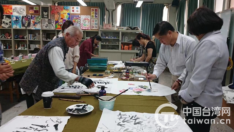 南投藝術家作畫(圖片來源:溫州市臺辦)