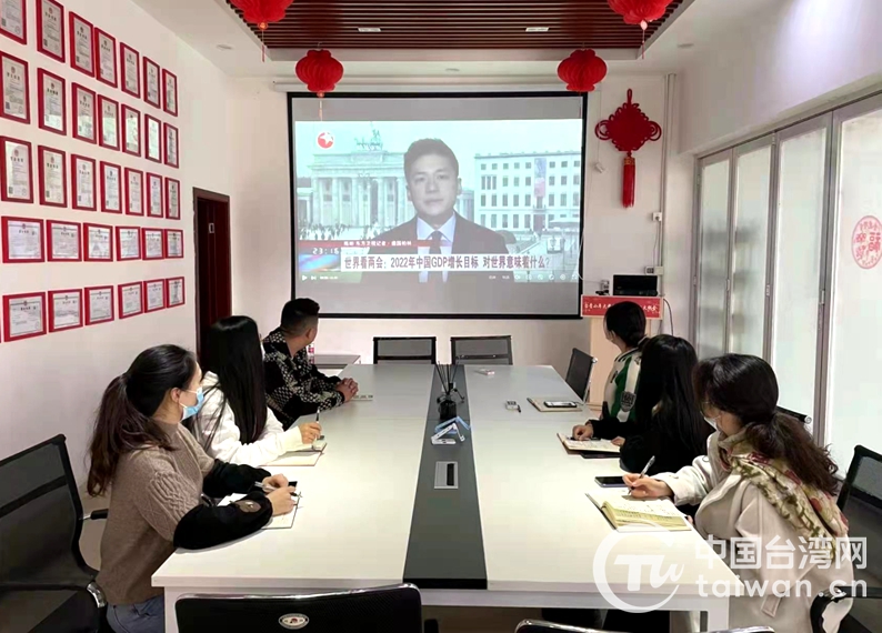 亞臺青(成都)海峽青年創(chuàng)業(yè)園組織臺灣創(chuàng)客收看全國“兩會”(圖片來源:四川省臺辦)