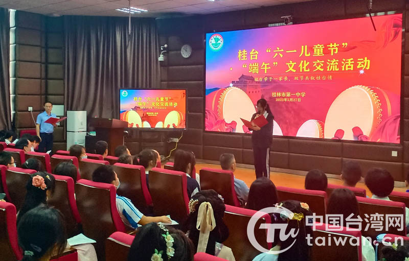 中國臺灣網(wǎng)5月31日訊 六一兒童節(jié)和端午節(jié)日近,廣西桂林市第一中學(xué)近日舉辦桂臺“六一兒童節(jié)”、“端午”文化交流活動,邀請該校臺灣學(xué)生和部分外校臺灣學(xué)生及其家長,與當(dāng)?shù)貙W(xué)生代表歡聚一堂,共慶節(jié)日,其樂融融。