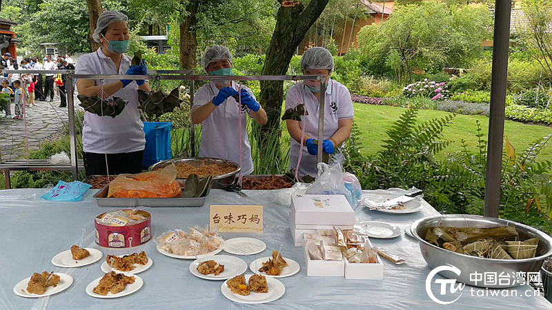 現(xiàn)場(chǎng)嘉賓體驗(yàn)粽子美食。(中國臺(tái)灣網(wǎng)發(fā))