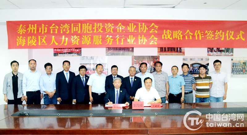 中國臺灣網6月8日訊 近日,在泰州市臺辦的牽線搭橋下,泰州市臺協(xié)與海陵區(qū)人力資源服務行業(yè)協(xié)會舉辦戰(zhàn)略合作協(xié)會簽約儀式。明確兩會建立全方位、多角度、深層次的戰(zhàn)略合作關系,實現(xiàn)信息與服務雙向溝通,及時、精準、高效地為有需求的臺企“量身定制”人力資源服務方案。