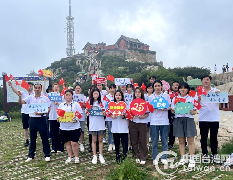中國臺灣網(wǎng)7月6日訊 “讓海風吹拂了五千年,每一滴淚珠仿佛都說出你的尊嚴;讓海潮伴我來保佑你,請別忘記我永遠不變黃色的臉……”2022年7月1日,香港回歸25周年紀念日!熬壴邶R魯 品味山東”臺港澳青年學生看山東活動的青年學生們來到了五岳之首——泰山,矗立泰山之巔,大家激動地揮動著國旗和香港特區(qū)區(qū)旗,唱響《東方之珠》這一經(jīng)典旋律,高聲呼喊“祝福香港、祝福祖國”,共同慶祝香港特別行政區(qū)回歸祖國25周年,向祖國母親致敬!