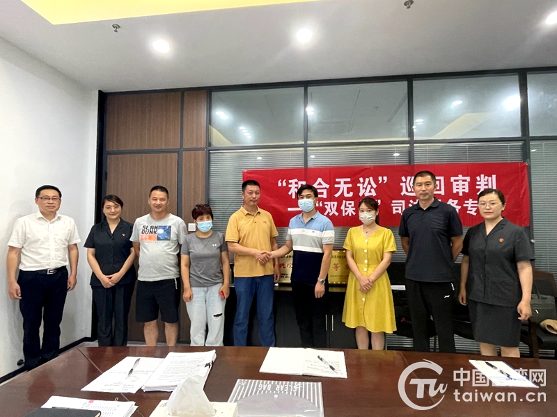 中國(guó)臺(tái)灣網(wǎng)7月20日訊 近日,淮安市涉臺(tái)糾紛調(diào)處中心“和合無訟”巡回法庭走進(jìn)淮安經(jīng)開區(qū)勞動(dòng)爭(zhēng)議仲裁院,淮安市臺(tái)辦特邀調(diào)解員、淮安經(jīng)開區(qū)法院法官和淮安經(jīng)開區(qū)勞動(dòng)爭(zhēng)議仲裁院仲裁員共同就某臺(tái)企勞動(dòng)爭(zhēng)議批量案件開展聯(lián)合調(diào)解活動(dòng)。