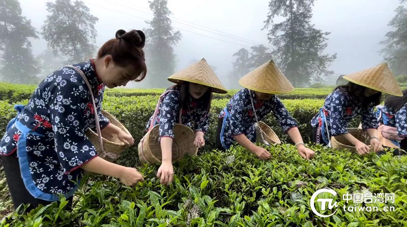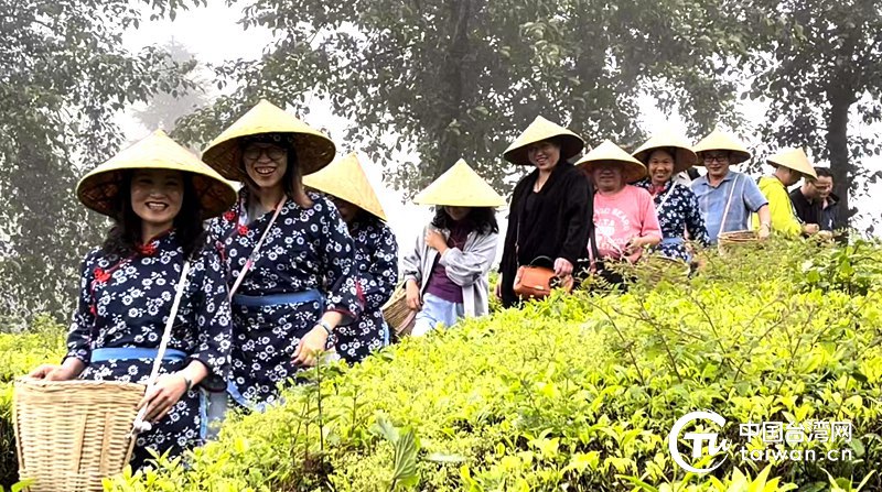 兩岸婚姻家庭體驗(yàn)采茶(中國(guó)臺(tái)灣網(wǎng) 葉春祿 攝)