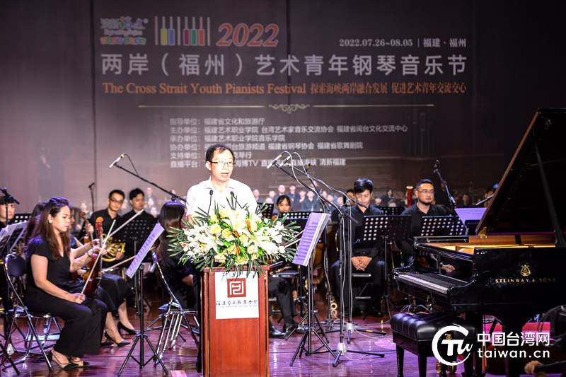 中國(guó)臺(tái)灣網(wǎng)7月29日訊 7月28日晚,由福建省文化和旅游廳指導(dǎo),福建藝術(shù)職業(yè)學(xué)院、臺(tái)灣藝術(shù)家音樂(lè)交流協(xié)會(huì)、福建省閩臺(tái)文化交流中心主辦的2022年兩岸(福州)藝術(shù)青年鋼琴音樂(lè)節(jié),在兩岸鋼琴音樂(lè)家悠揚(yáng)的旋律中啟幕。福建省文化和旅游廳副廳長(zhǎng)肖長(zhǎng)培、全國(guó)臺(tái)灣同胞投資企業(yè)聯(lián)誼會(huì)常務(wù)副會(huì)長(zhǎng)李泓蘭等嘉賓及兩岸音樂(lè)節(jié)專家學(xué)者、音樂(lè)愛好者近200人出席開幕活動(dòng)。肖長(zhǎng)培、李泓蘭等分別在開幕式上致辭。