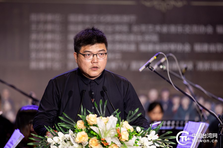 臺(tái)灣藝術(shù)家音樂(lè)交流協(xié)會(huì)秘書長(zhǎng)、兩岸藝術(shù)青年聯(lián)合交響樂(lè)團(tuán)首席樂(lè)手劉融致辭(中國(guó)臺(tái)灣網(wǎng)發(fā))